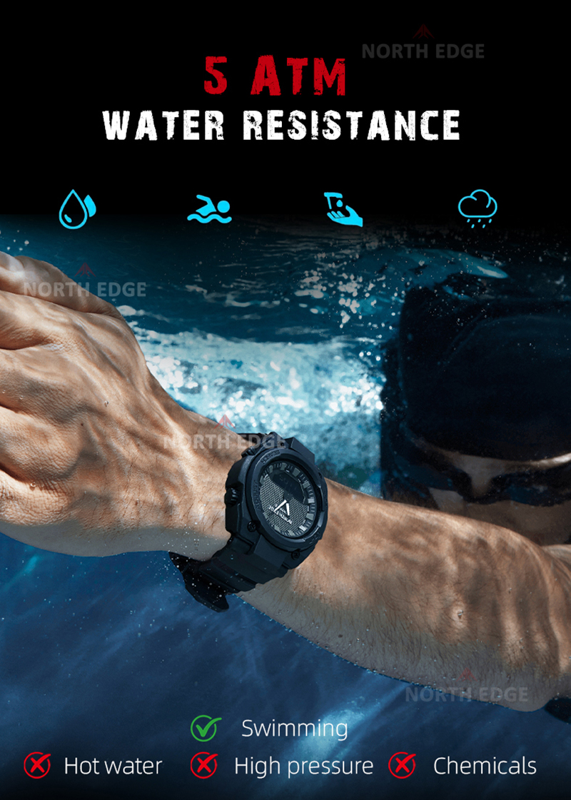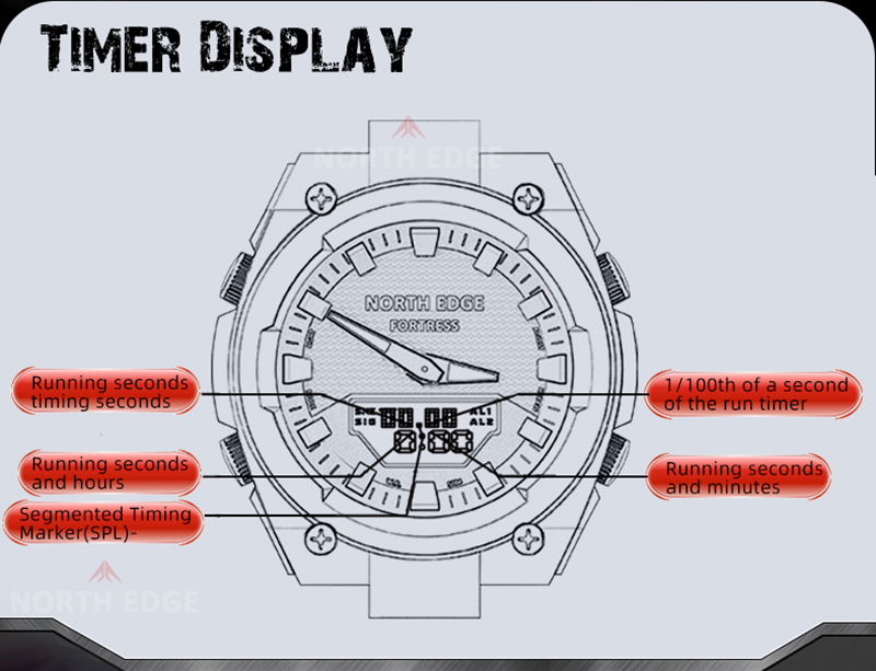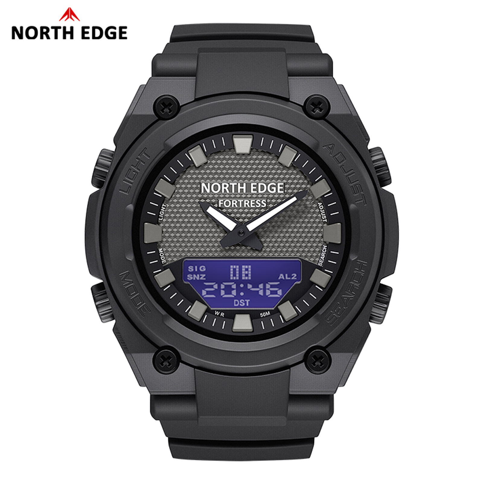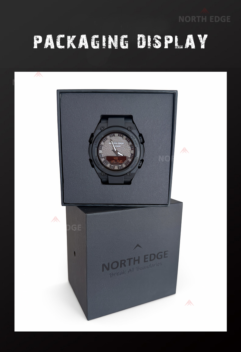 North Edge Fortress este un ceas sport puternic și bine echilibrat, creat pentru cei care au nevoie de fiabilitate, funcții avansate și un design solid, cu aspect tactic. Combinația dintre afișajul analogic și cel digital oferă o citire rapidă și clară a timpului, indiferent de condiții.