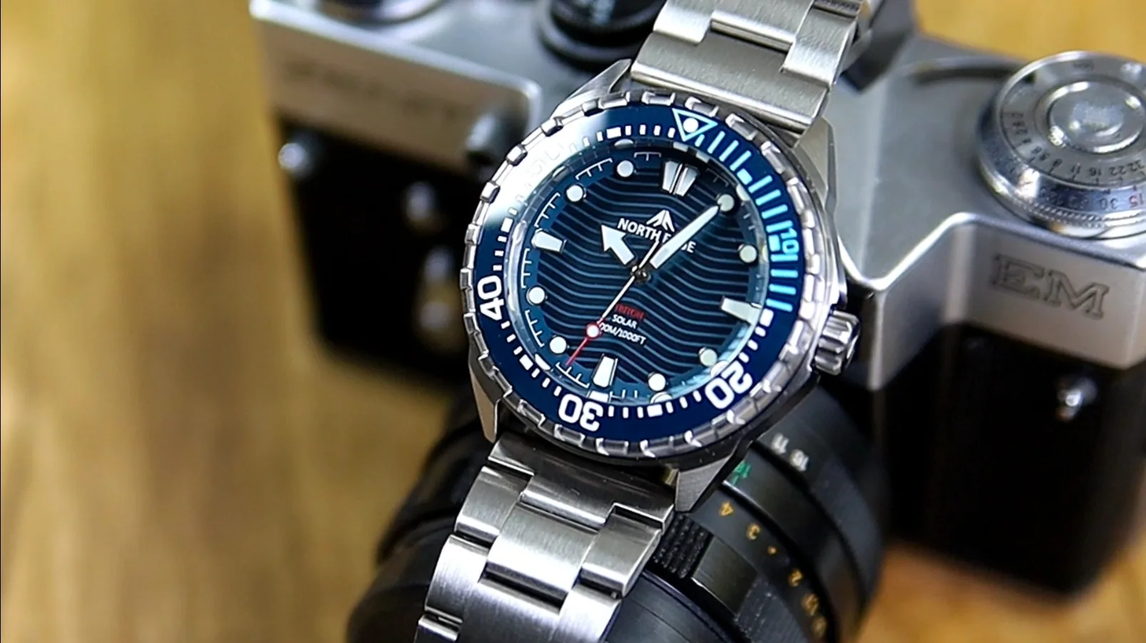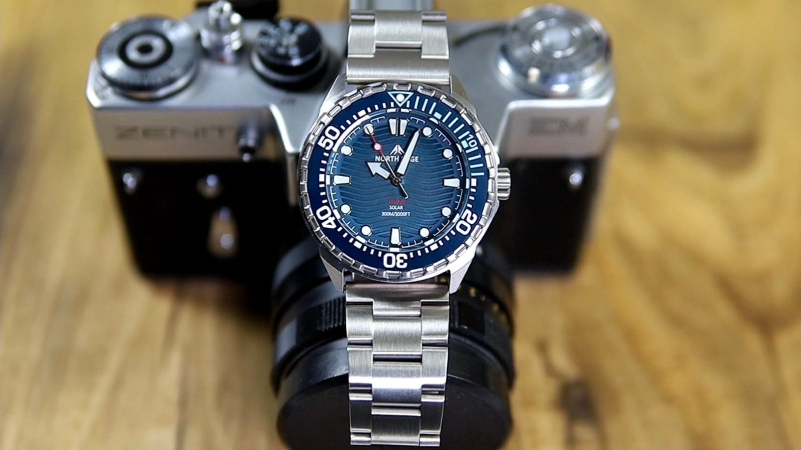 North Edge Triton oferă o configurație tehnică impresionantă pentru un ceas din categoria de preț accesibilă. Este echipat cu mecanism solar, rezistență la apă de până la 300 m, carcasă și brățară din oțel inoxidabil, precum și bezel cu inserție ceramică.